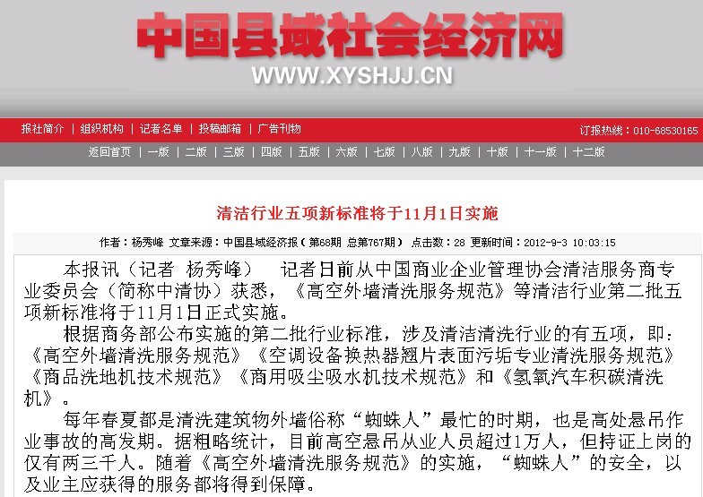 2012年8月24日,愛瑞特主持起草的“商用洗地機技術規(guī)范”行業(yè)標準在北京紫玉飯店召開新聞發(fā)布會。商務部流通業(yè)發(fā)展司副司長吳國華、中國商業(yè)企業(yè)管理協會會長劉育才、“中清協”副會長單位、出席了此次會議。