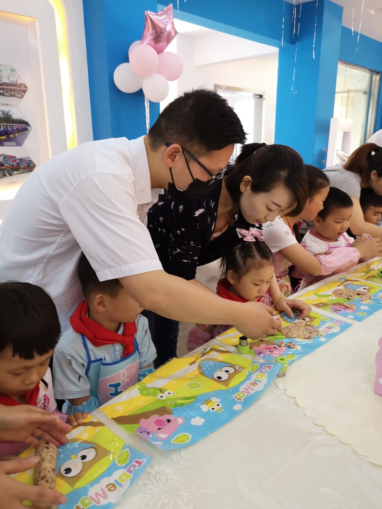愛瑞特還為寶貝們準備了精彩的烘焙課,寶貝們自己動手制作小餅干,有愛心的、有長頸鹿的、有星星的,